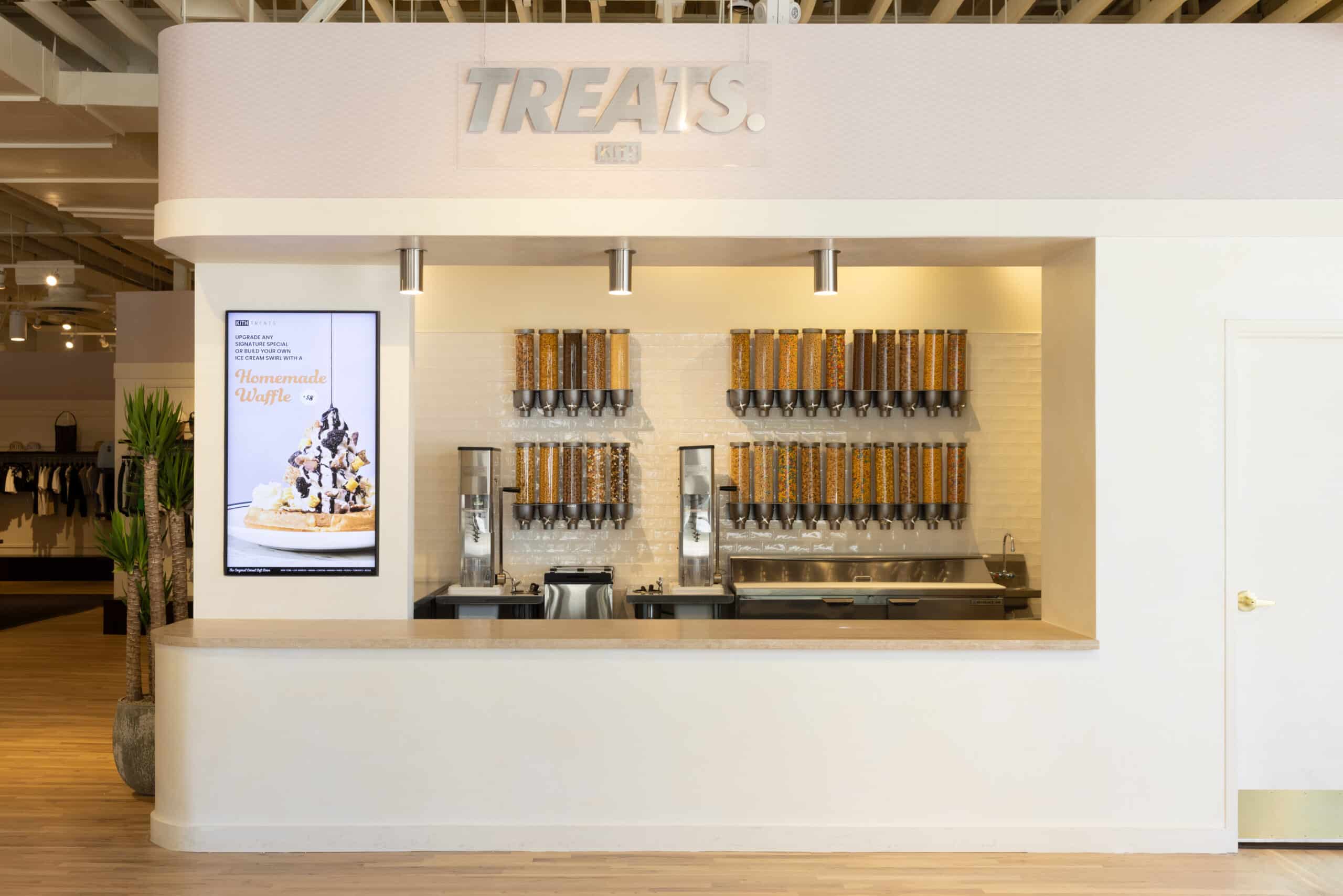 Kith Treats is a completely unique dessert experience offering a bevy of cereal-based treats, including custom cereal combinations, cereal ice cream swirls, and cereal milkshakes.