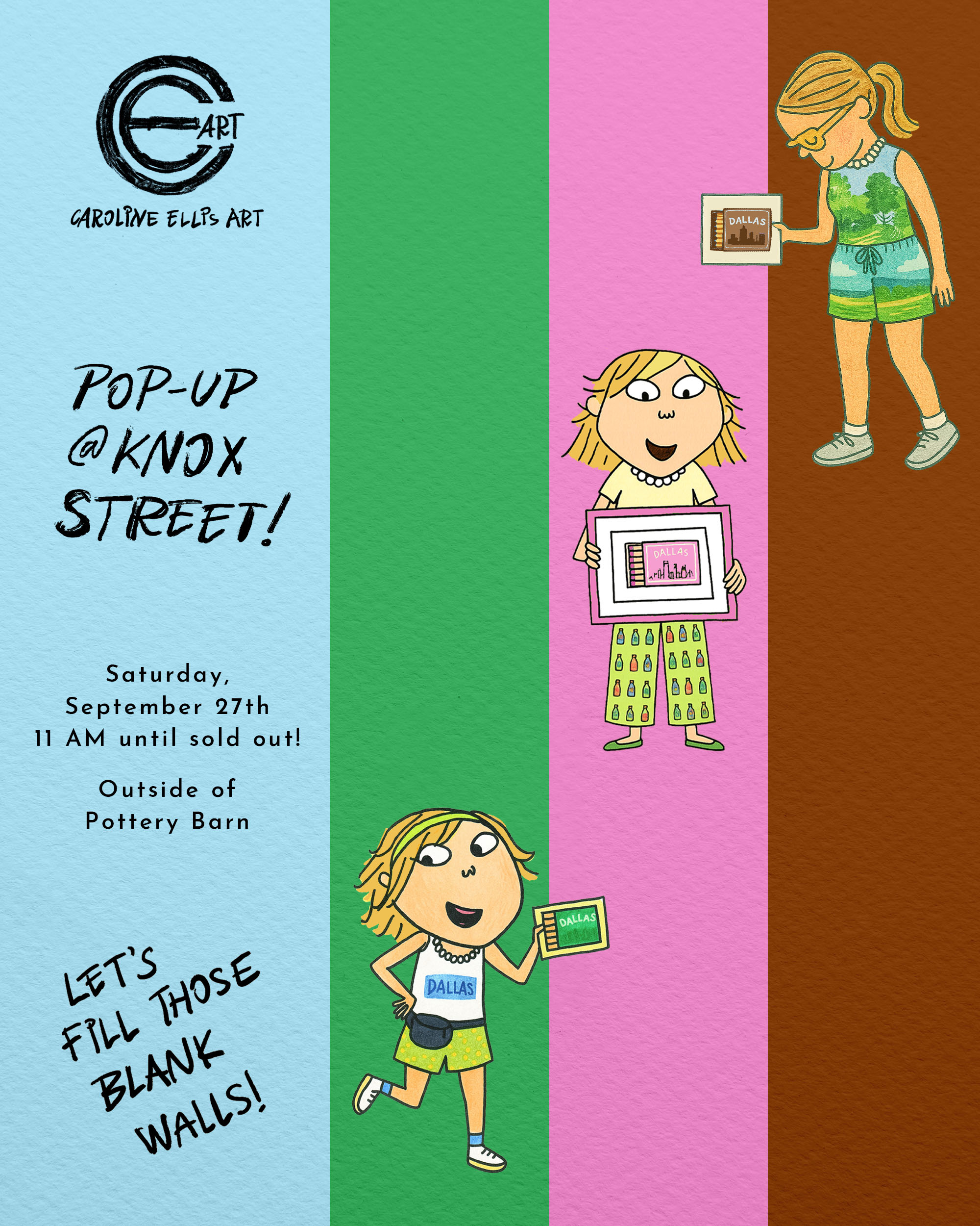 This Saturday at Knox Street, Dallas-based artist Caroline Ellis will host a pop-up near Pottery Barn & Starbucks, starting at 11 AM until sold out. She’s bringing a special restock of the sold-out Dallas Matchboxes in Rodeo Brown, along with other limited edition and best-selling 8×10 prints.